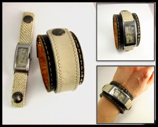 Multi-functional leather cuffs: come with 2 snap-on accessories.  $45